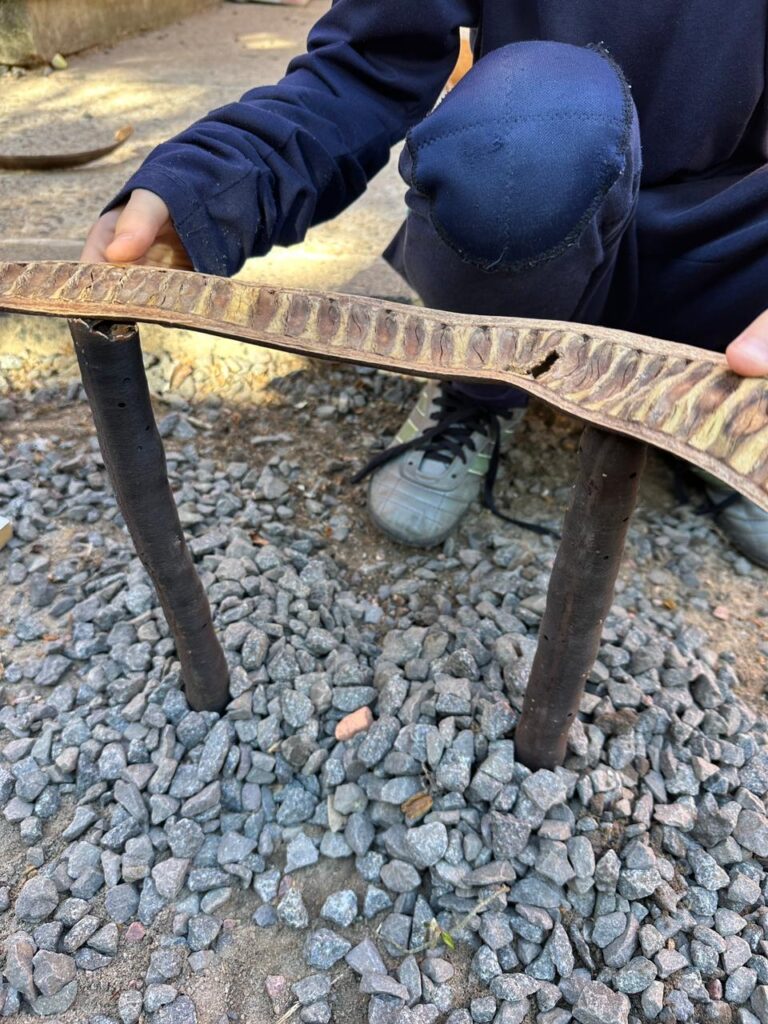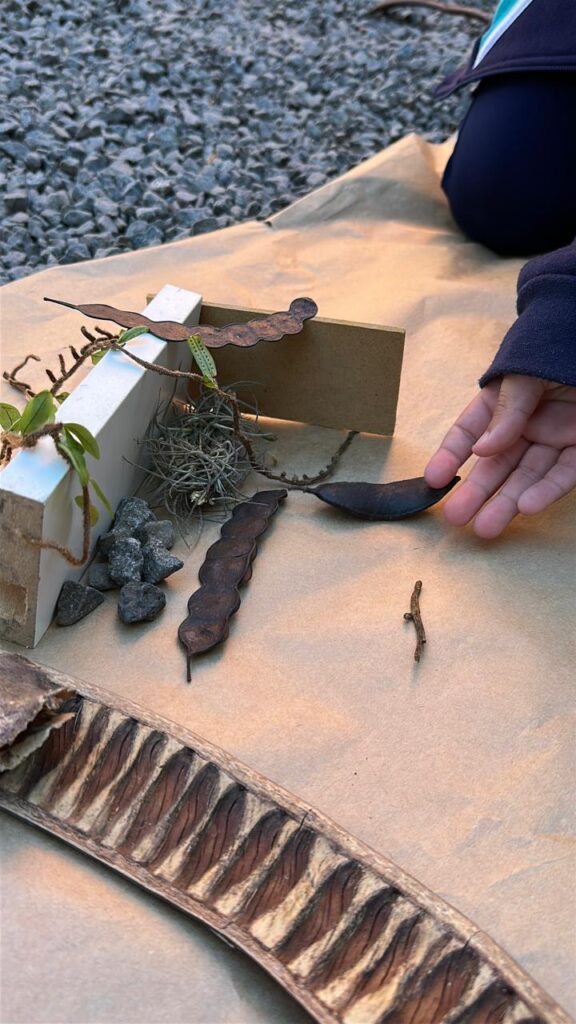 De acordo com a bolsista do projeto, no workshop a equipe não só ouviu as crianças, mas convidou elas para brincar e tentar expressar com elementos da natureza o que estavam querendo ali naquele espaço. “Elas usaram elementos da natureza para fazer suas construções e nós registramos esse acervo de construções que elas fizeram, as brincadeiras que elas trouxeram, e as curiosidades de suas falas”, enfatizou.