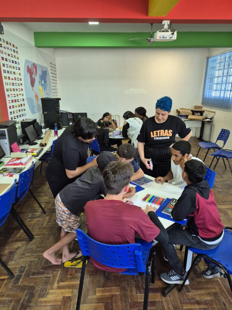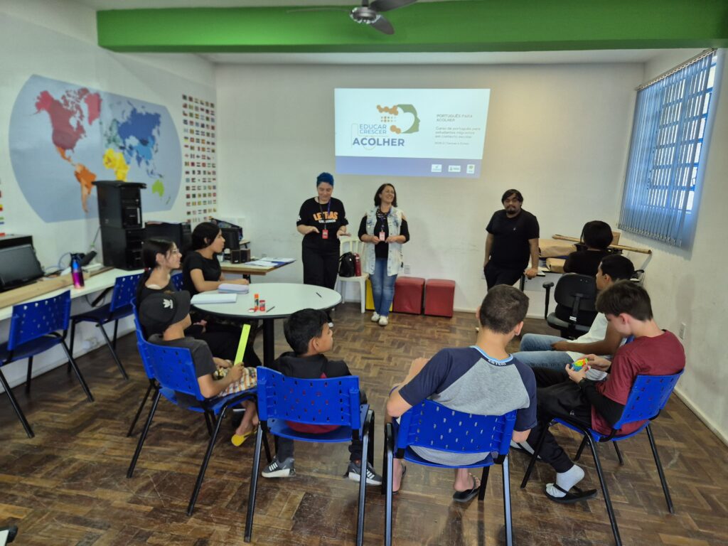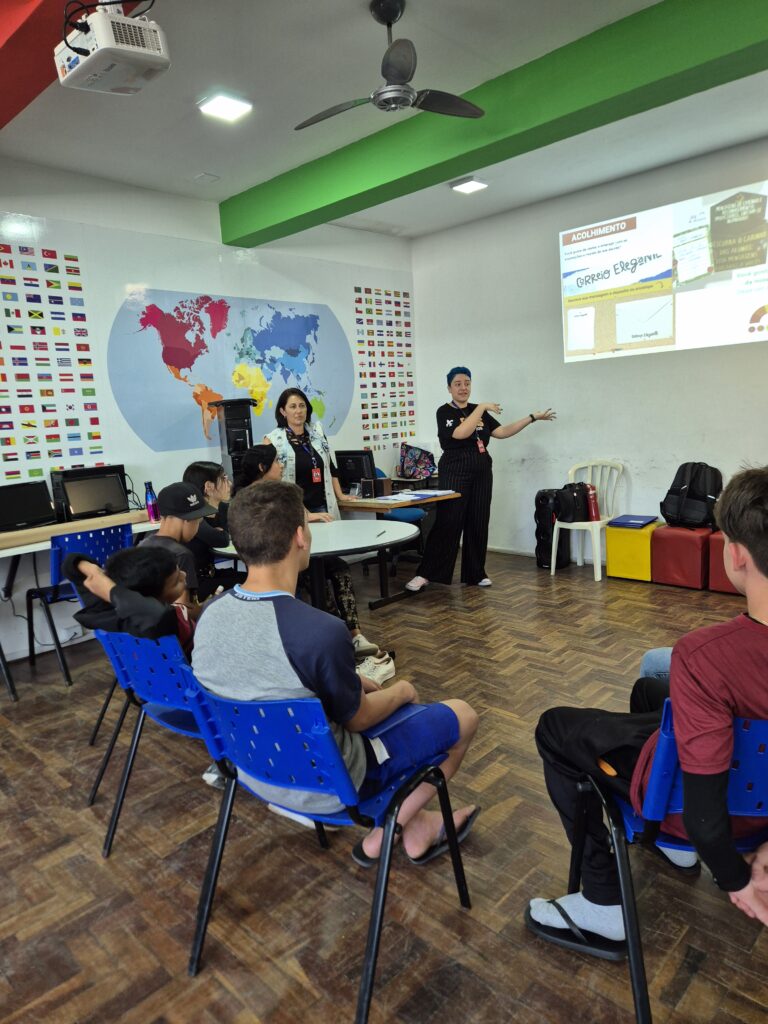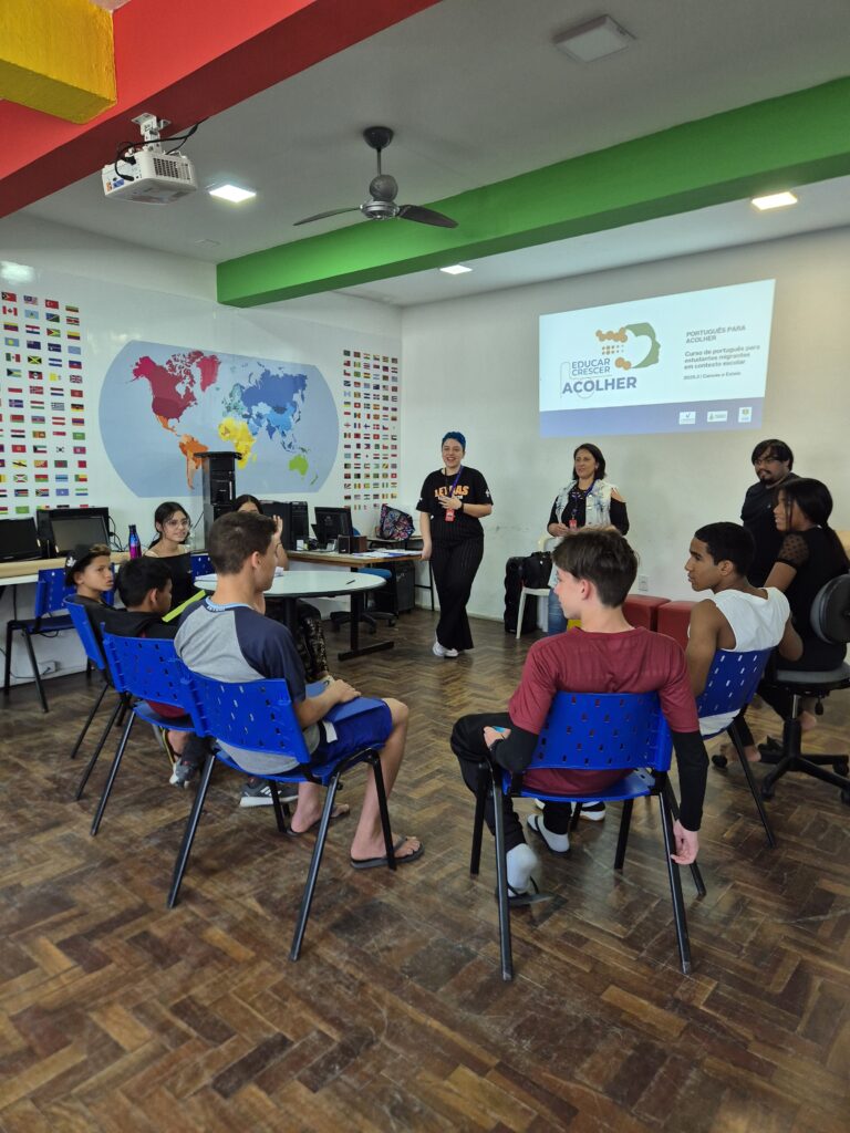 Já a preceptora da ação na escola Erna Würth, Brunna Martins, acredita que a principal dificuldade que as escolas que têm alunos de outros países enfrentam é a barreira linguística. “E eu acho que o curso ajudou bastante, não só na questão de alfabetizá-los em português, mas, principalmente, pra eles terem um espaço onde possam se soltar, falar sobre a cultura deles, livremente, abertamente. A gente tem uma menina que notavelmente se soltou mais em sala de aula depois que iniciou o curso, ou seja, essa é uma ação que tem reflexos em outras atividades”, destacou.