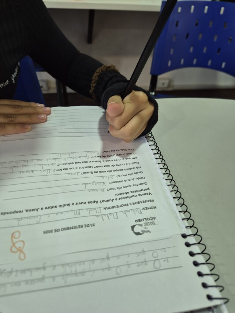 Um curso para acolher e integrar pessoas migrantes nas comunidades onde estão inseridas, assim é o curso de português como língua de acolhimento, coordenado pelo projeto Acolher. A iniciativa acontece desde agosto de 2025 e atende crianças e adolescentes, dos municípios de Esteio e Canoas. As aulas são realizadas nas EMEF Eva Karnal Johann e EMEF Erna Würth, nos turnos da manhã e da tarde, impactando 28 estudantes vindos da Argentina, Colômbia, Cuba, Venezuela e Haiti.
