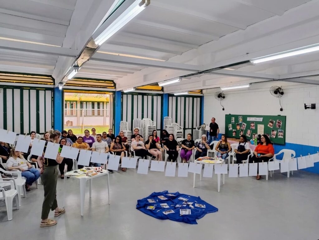 A professora Marta Elena da Rosa, da EMEF Erna Würth, resumiu o impacto transformador da experiência. Inicialmente cética sobre a relevância do curso para seu trabalho de reforço escolar, ela foi rapidamente surpreendida. “No primeiro dia já foi impactante para mim, porque ele trabalhou as emoções, ele mexeu com as emoções, com o pensamento, com o olhar crítico. Fomos muito acolhidos, tivemos muitas trocas e para mim foi muito significativo“, declarou.