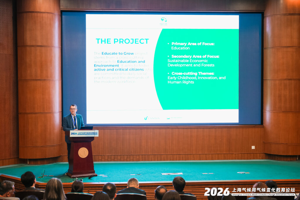 Nos dias 23 e 24 de abril, aconteceu o Fórum de Educação sobre Mudanças Climáticas (Shanghai Climate Week 2026). O coordenador do projeto Educar Crescer, professor Luiz Rohden, representou o Brasil como palestrante convidado no evento que teve como foco central no papel da educação como base para o desenvolvimento sustentável.